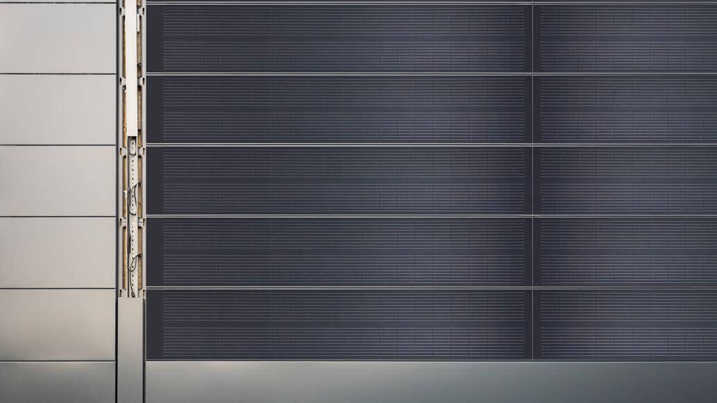 Die bewährte vorgehängte, hinterlüftete Metallfassade Planum® von DOMICO wurde nun um eine vollintegrierte Solar-Technik ergänzt. Dabei werden auf die Planum®-Deckbreiten 400, 600 und 800 mm abgestimmte PV-Module eingesetzt. Auf einem Planum®-Profil werden ein oder zwei PV-Module mit einer Länge bis ca. 2 m aufgebracht. Die Leistung liegt bei 175 WP/m².