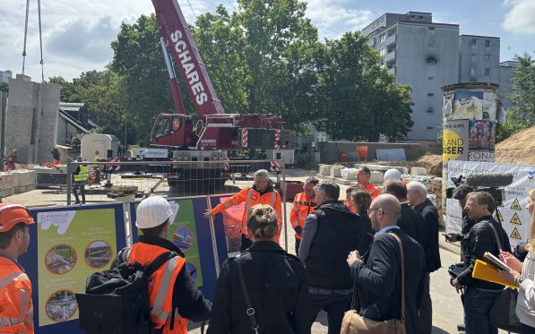 Foto: Auch NRW-Verkehrsminister Oliver Krischer (B90/Grüne) besuchte die Baustelle bei Neuss. (Quelle: Echterhoff)