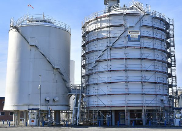 Die Sauerstofftanks eines Herstellers haben Durchmesser zwischen sechs und 45 Metern. Jeweils ein Arbeitsgerüst musste an ihnen aufgebaut werden, um Beschichtungen anzubringen, die die gigantischen Behälter gegen Korrosion schützen.