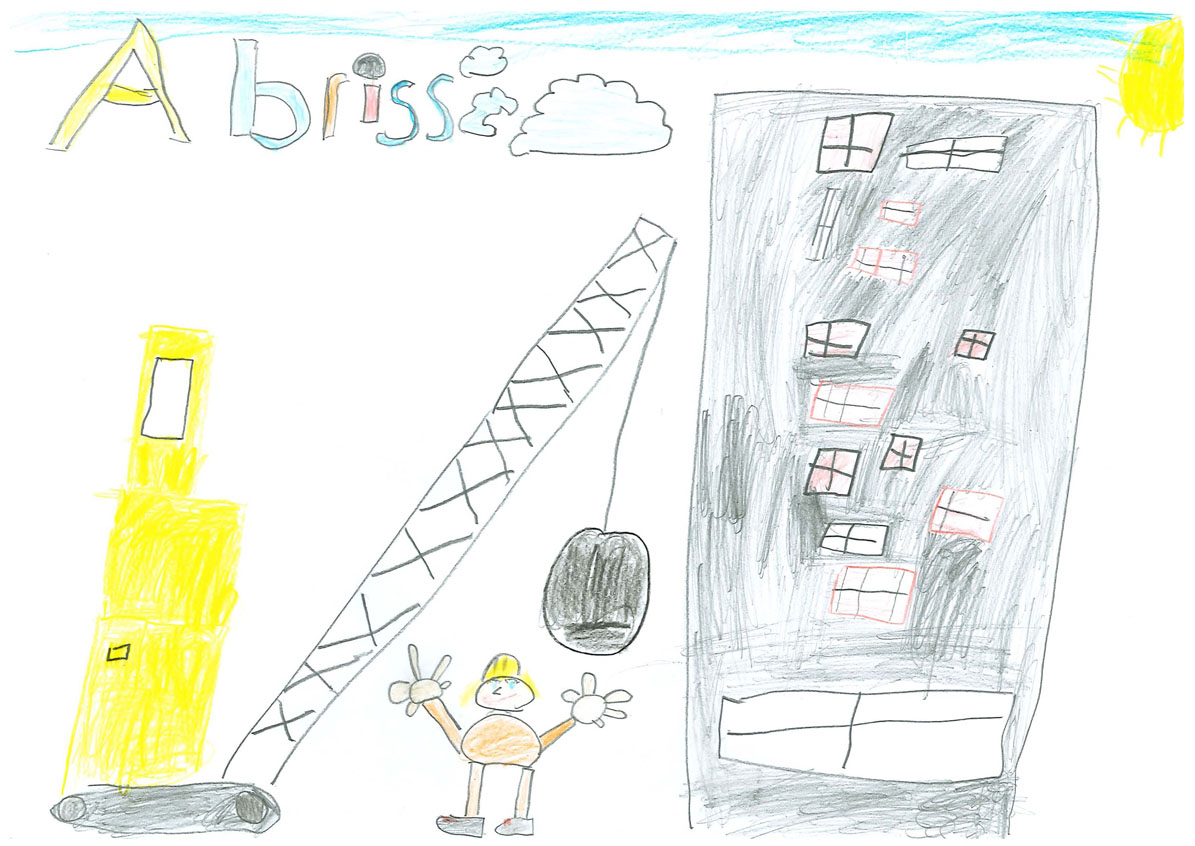 Auch das Bild von Rufus Mechler (Klassenstufe 1 zum Zeitpunkt der Einreichung, jetzt Klasse 2) in der Grundschule Eggersdorf in Petershagen/Eggersdorf hat der Verband ausgezeichnet Für sein besonders gelungenes "Abriss"-Bild hat Rufus ein Preisgeld von 50 Euro erhalten. Gut gemacht! Darauf kann der Grundschüler mit Recht stolz sein. Auch seine Mitschüler können sich freuen: 150 Euro gab es für die Klassenkasse , Die Patenschaft dafür hat die RBS Raffinerie-Bau-Schwedt GmbH übernommen.