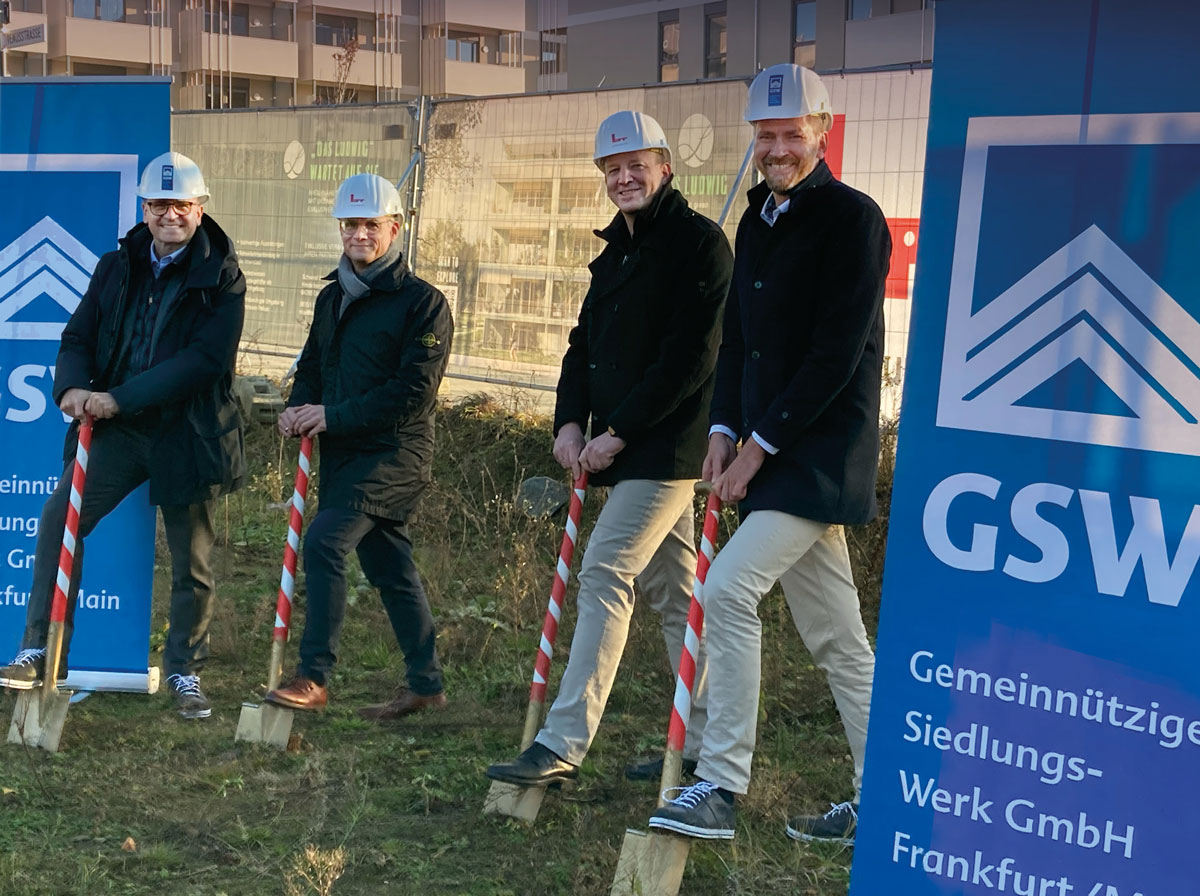 Mitte Dezember erfolgte der Spatenstich für den Bau von 20 hochwertig ausgestatteten Eigentumswohnungen im Baufeld A1 des Darmstädter Ludwigshöhviertels. Gemeinsam mit der GSW Gemeinnütziges Siedlungswerk GmbH realisiert das Bauunternehmen Adolf Lupp an den Baufeldern A1 und C1 insgesamt 41 Eigentumswohnungen in moderner Holz-Hybrid-Bauweise.